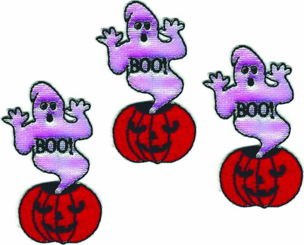 Jack-o-Lantern Ghost Halloween Patch Cut out Iron on Sew on (2 1/2″ in) Lot of 3