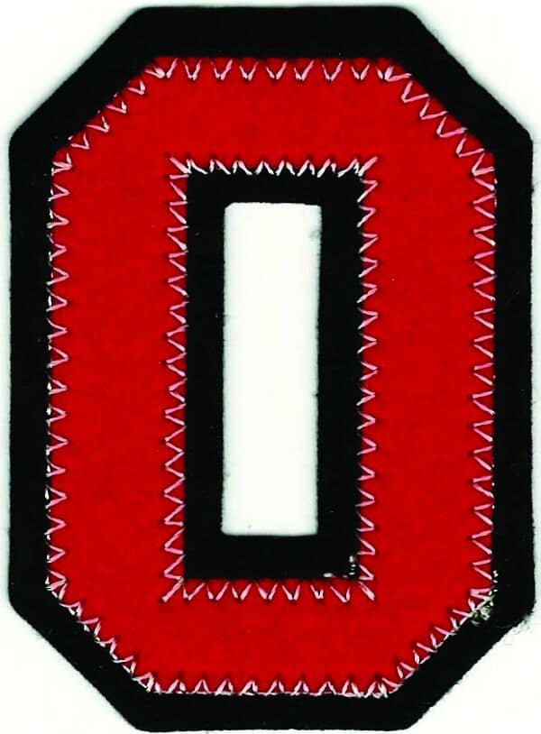 Description: This listing is for a Red Black Felt Letter “O” Patch – Varsity Style Iron-On Applique (2 1/2″ in).