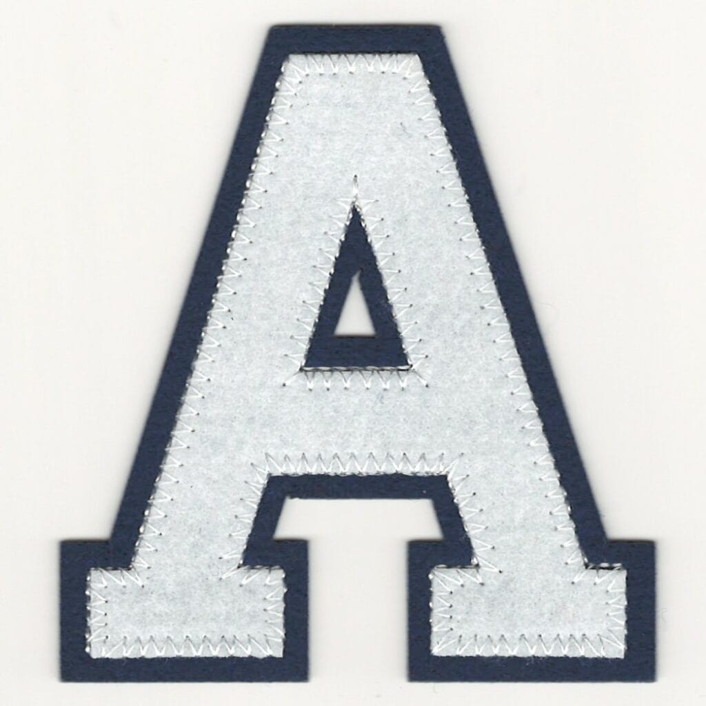 Design: Bold block varsity letter “A”